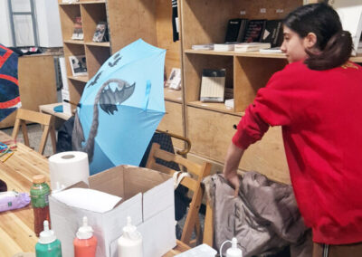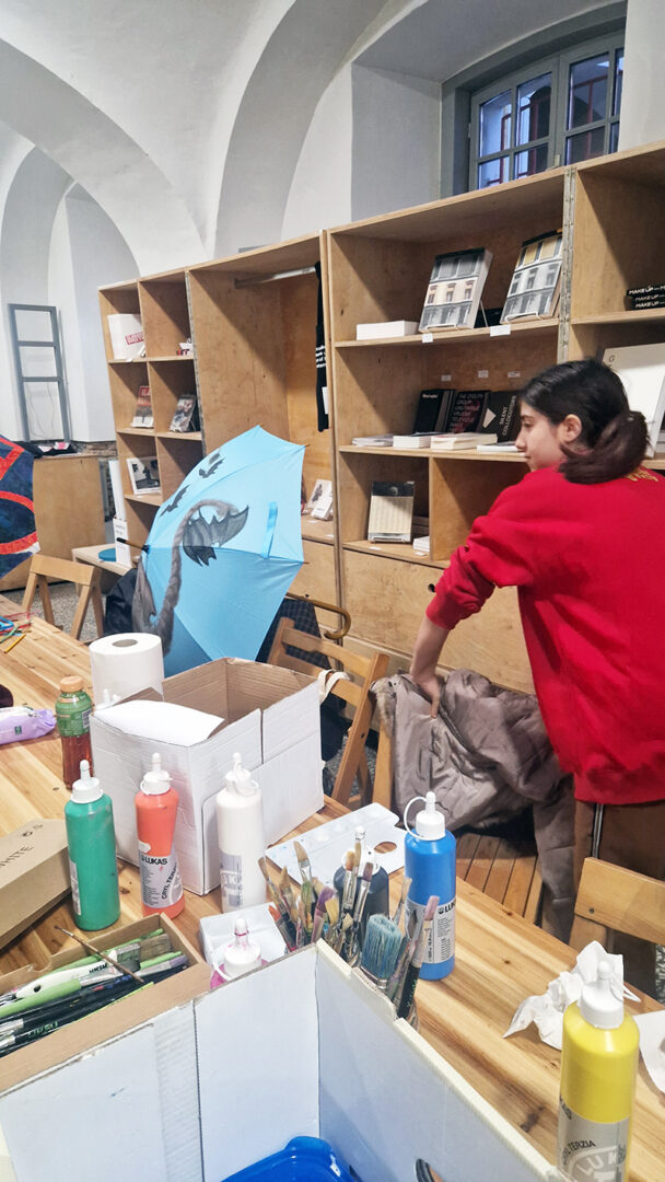 Radove su stvarali učenici Prve riječke hrvatske gimnazije, Građevinske i tehničke škole Rijeka, Škole za trgovinu i modni dizajn Rijeka te Škole za primijenjenu umjetnost u Rijeci, pod mentorstvom umjetnika Jadranke Lacković, Tanje Blašković, Emanuele Santini i Alena Šimokovića. Izložba donosi prikaz kreativnog procesa nastalog kroz radionice i posjete ateljeima riječkih umjetnika te izložbu oslikanih kišobrana i platnenih torbi inspiriranih fundusom dvaju muzeja.