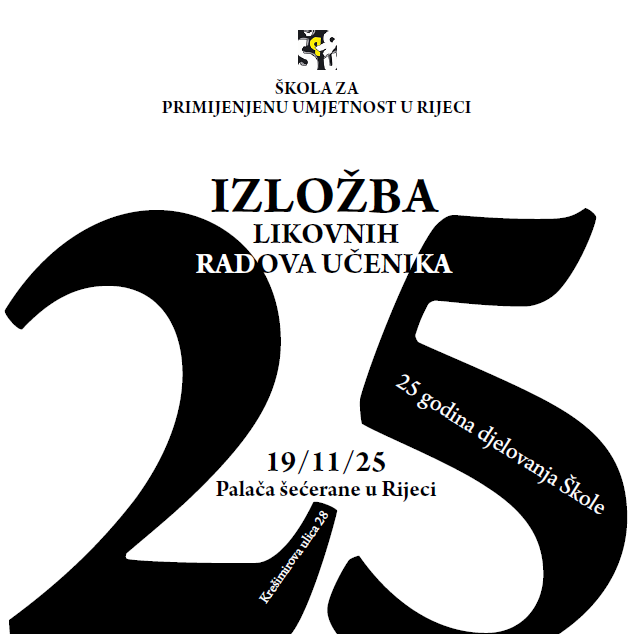 U prostoru Palače šećerane, Krešimirova ulica 28 u Rijeci, postavljena je izložba radova učenika povodom obilježavanja 25. obljetnice Škole za primijenjenu umjetnost u Rijeci – četvrt stoljeća stvaralaštva, znanja i umjetničkog rasta mladih kreativaca.